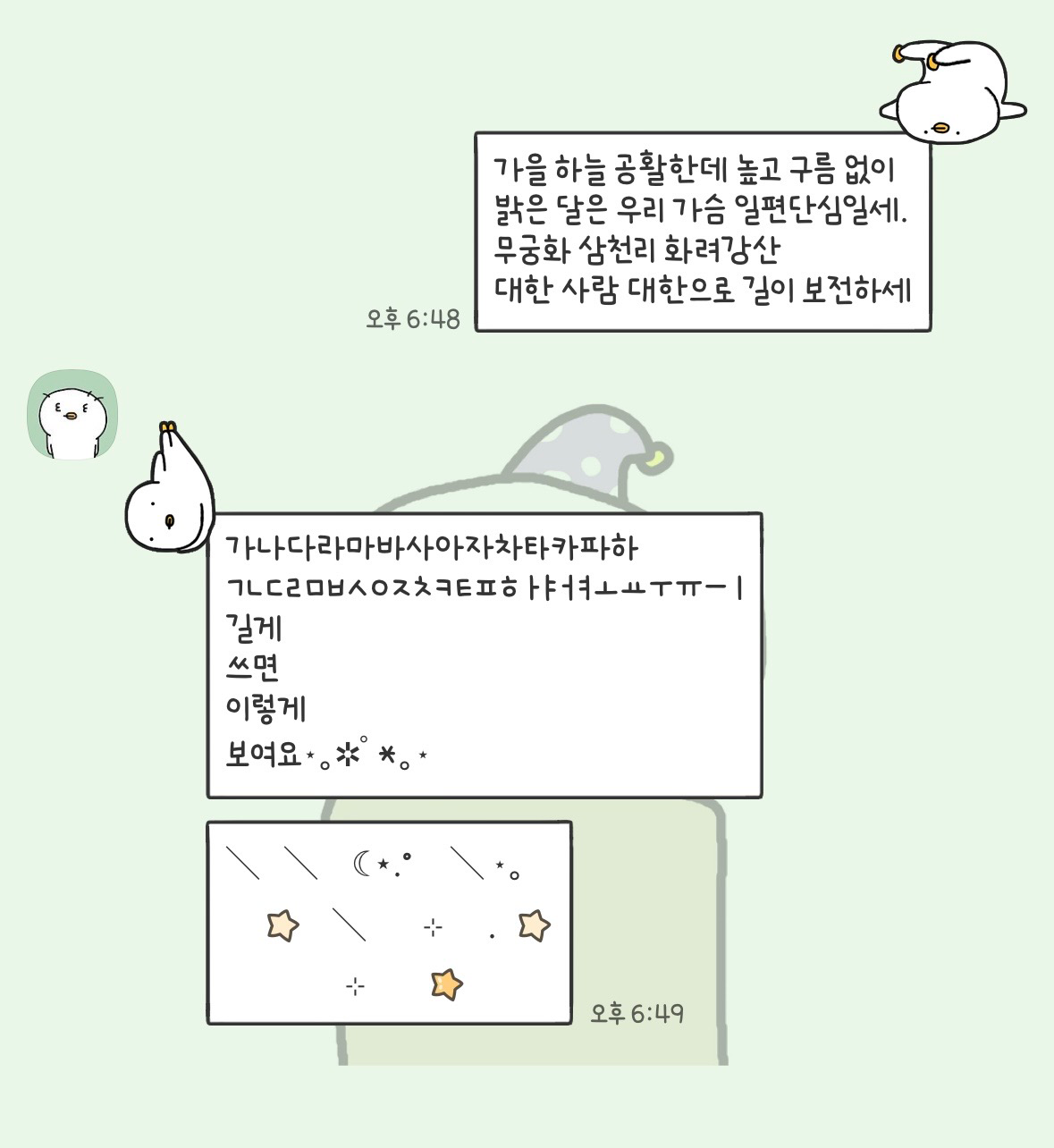 Dear감자칩 / 아이폰 기본 폰트 / 연두님_Pretendard SB 기울기